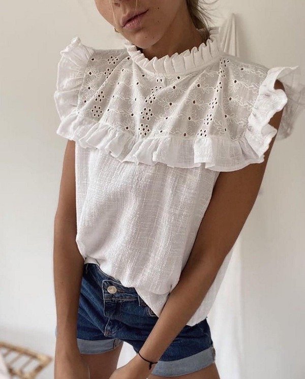Confeccionada en algodón rústico blanco con detalle en broderie.