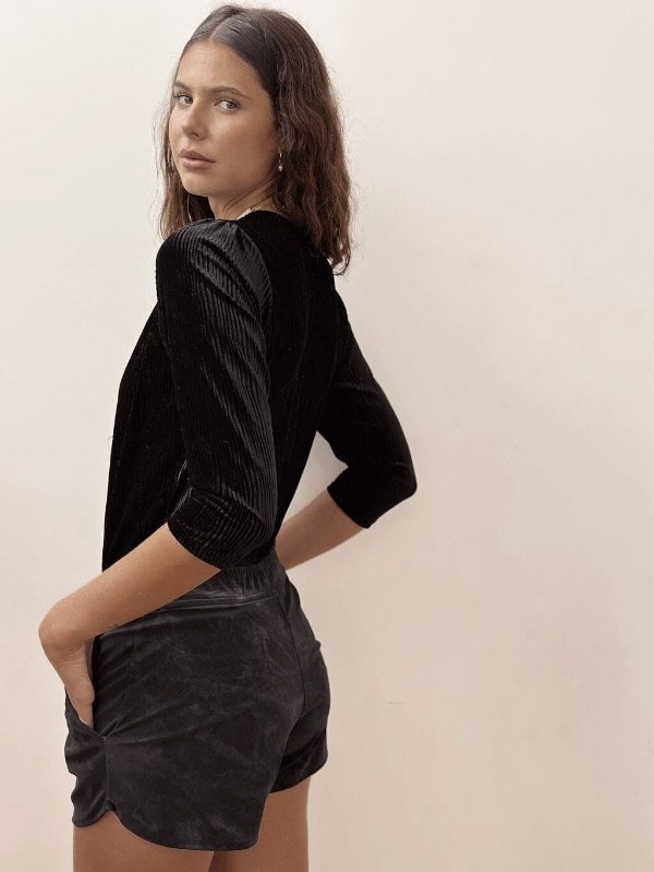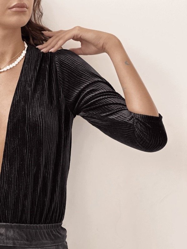Body realizado en velvet plisado con bombacha de creppe de punto.