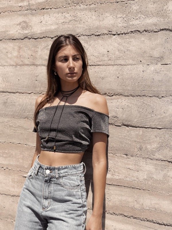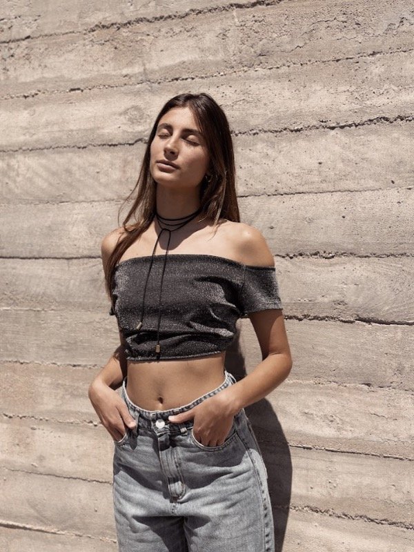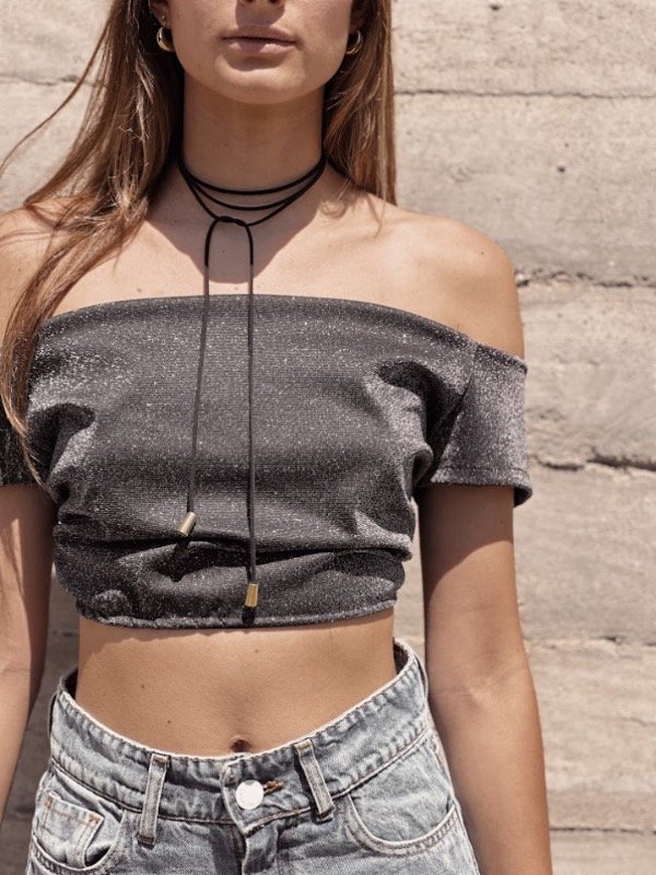 Top sin hombros compuesto de lurex.