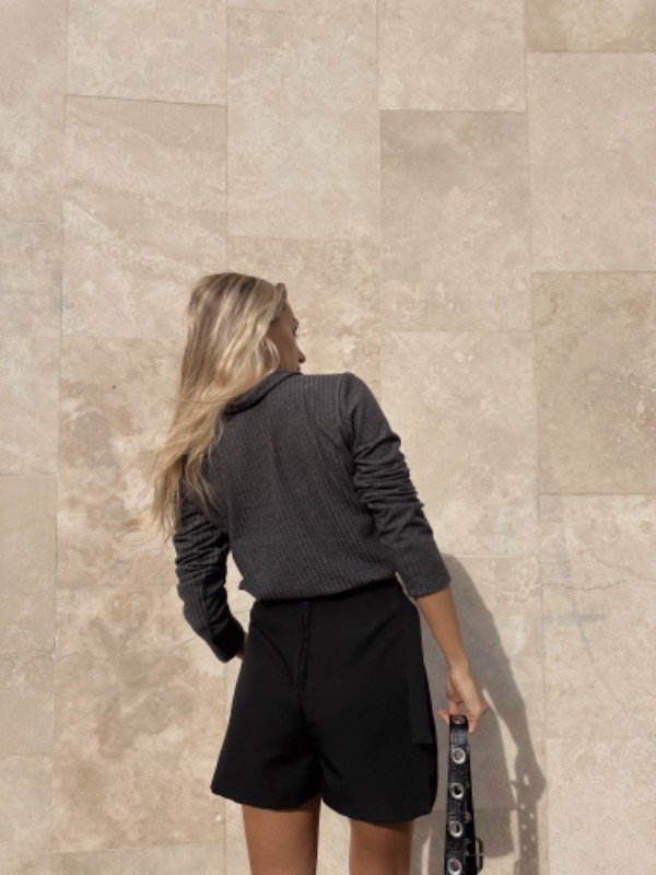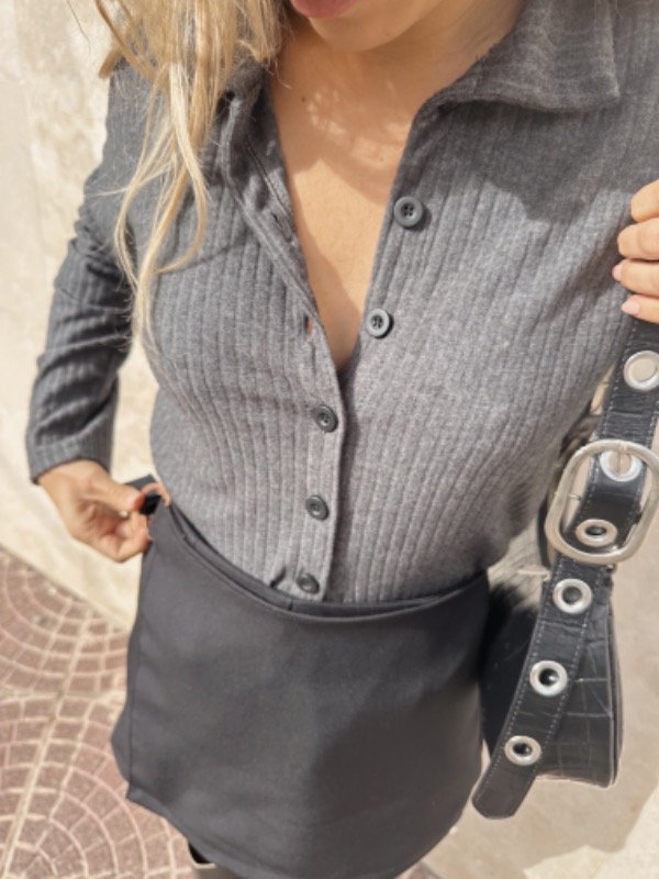 Top mangas largas confeccionado en morley brush, estilo cardigan ajustado con cuello polo y botones.