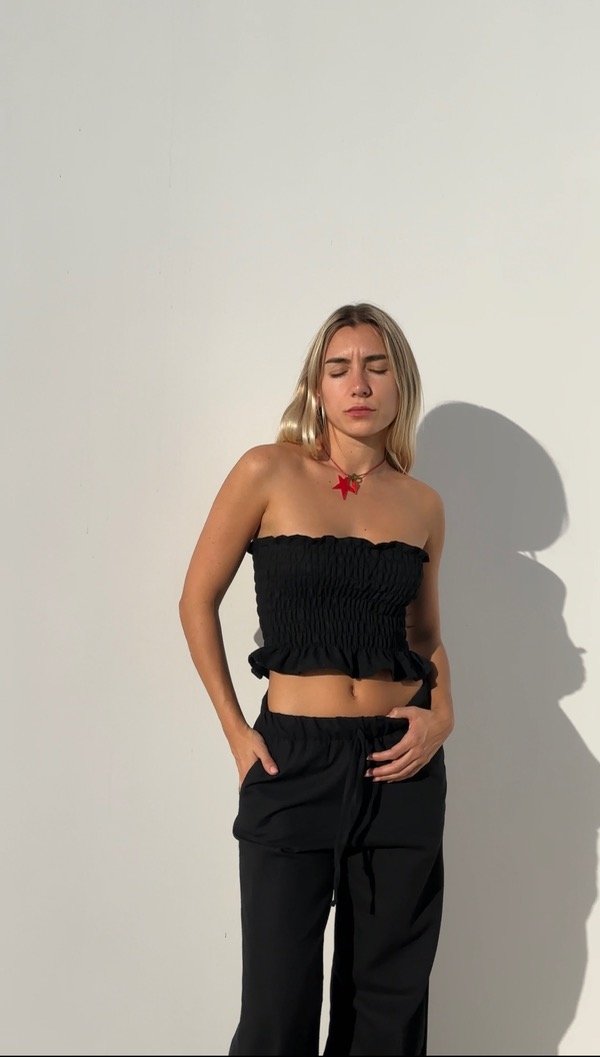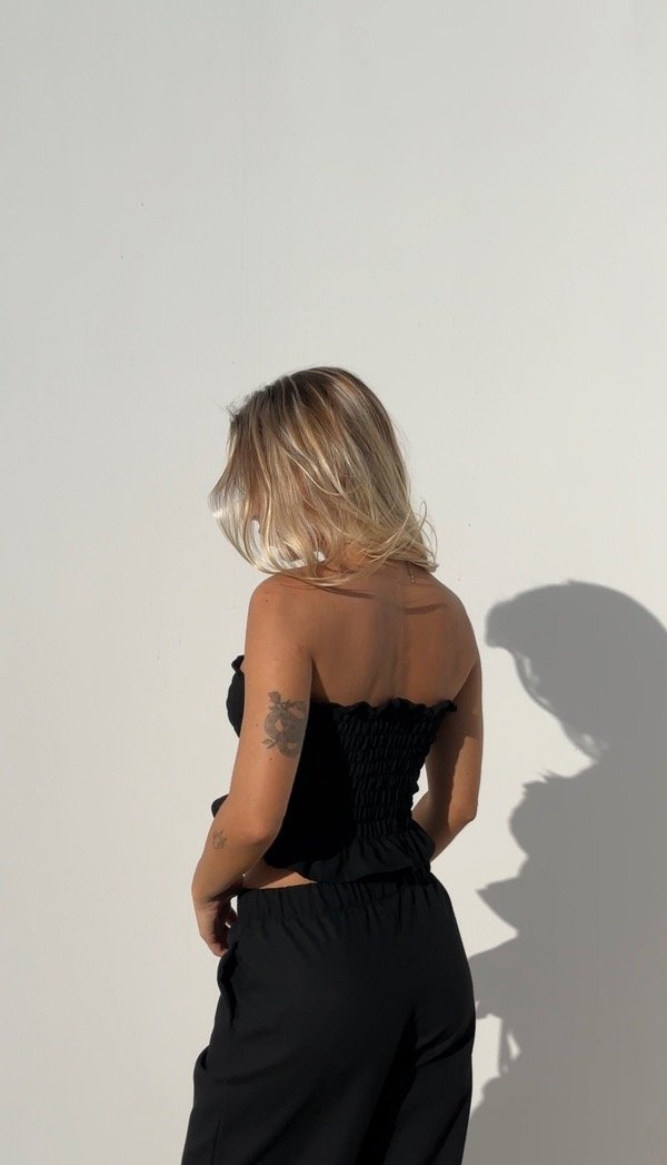 Top strapless con detalle de pliegues en delantero y espalda.