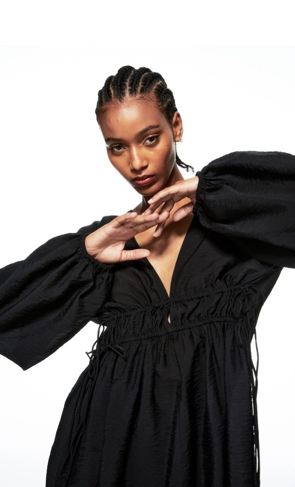 Mangas globo largas y voluminosas en un corte raglán con elástico estrecho en los puños.