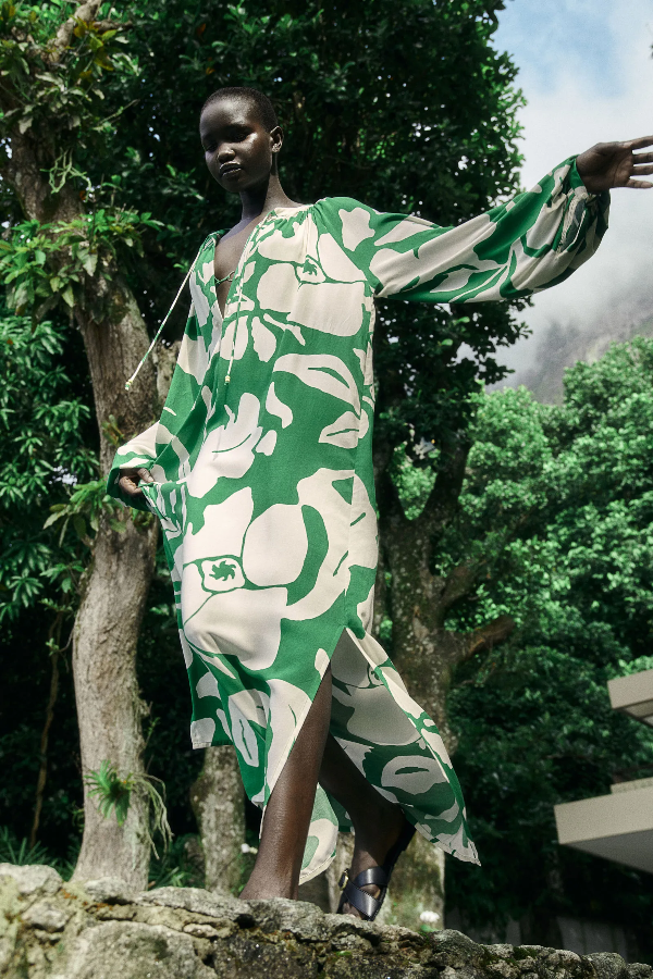 Vestido largo, sin forro, hasta la pantorrilla en tejido vaporoso.