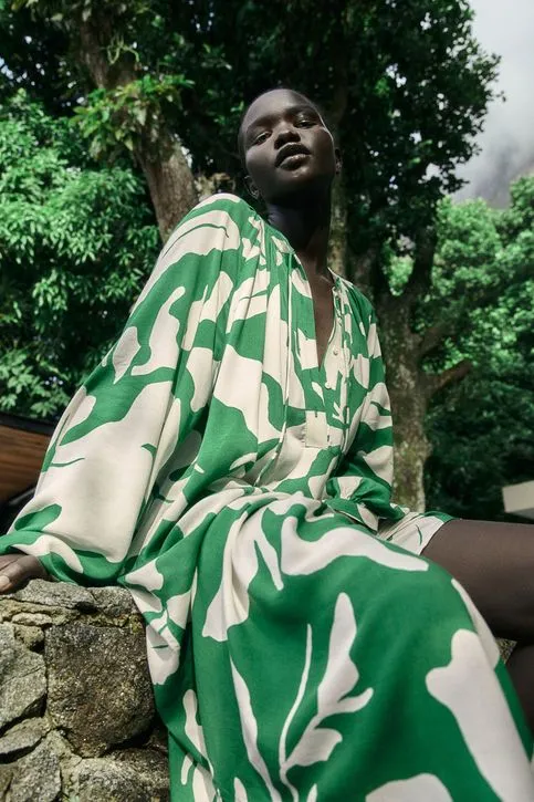 Mangas globo largas y voluminosas con corte raglán y puños estrechos con botones.